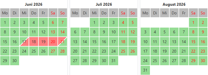 | Please only use this form for specific reservations. (A camping request is not necessary because the reservation times are always kept up to date). Until the end of May and from September we always have free camping pitches For the summer months applies: |